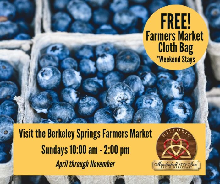We do not want you to feel the need to rise at a specific time or sit with others if you choose to have a quiet stay. We provide this special Gourmet “tastes of Berkeley Springs” breakfast to get you started and welcome you to explore the town at your leisure.