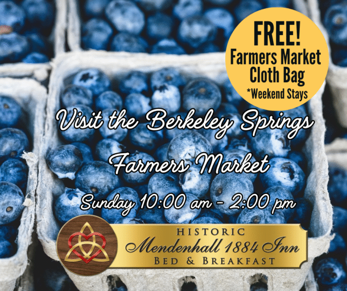 Ideally situated in the heart of America’s First Spa Town, the Mendenhall 1884 Inn Bed and Breakfast in Berkeley Springs offers a truly unique, full service experience and is a Top Rated places to stay hotel and lodging destination. Start each day with a pleasant morning stroll through this charming mountain town to the famous Warm Spring. Recently voted Best Warm Spring and nationally recognized as among the top 100 Best Small Towns in America!